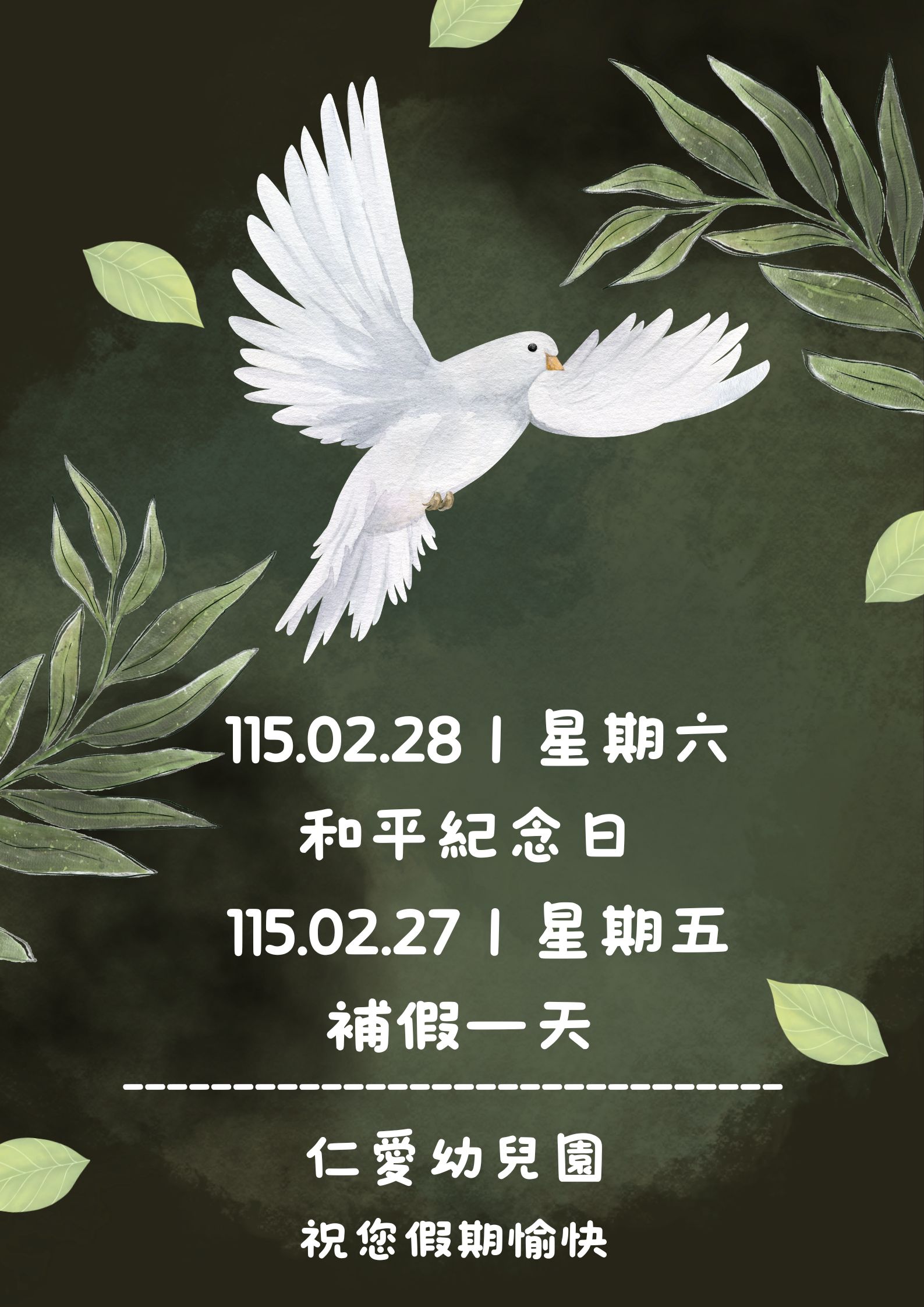 2026.02.28和平紀念日連續3天假期