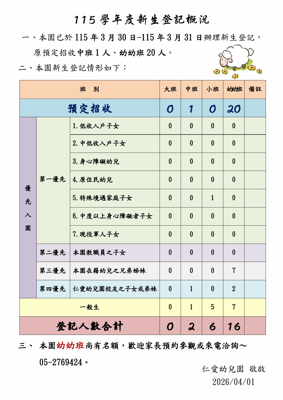 115學年度新生登記概況